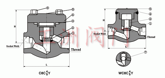 鍛鋼升降止回閥尺寸(MM)和重量(KG)