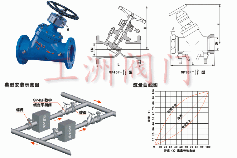 SP45F靜態(tài)流量平衡閥是一種具有數(shù)字鎖定特殊功能的調(diào)節(jié)型閥門,采用直流型閥體結構,具有更好的等百分比流量特性,能夠合理地分配流量,有效地解決供熱(空調(diào))系統(tǒng)中存在的室溫冷熱不均問題。同時能準確地調(diào)節(jié)壓降和流量,用以改善管網(wǎng)系統(tǒng)中液體流動狀態(tài),達到管網(wǎng)液體平衡和節(jié)約源的目的。閥門設有開啟度指示、開度鎖定裝置及用于流量測定的測壓小閥,只要在各支路及用戶入口裝上適當規(guī)格的平衡閥,并用專用智能儀表進行一次性調(diào)試后鎖定,將系統(tǒng)的總水量控制在合理的范圍內(nèi)、從而克服了“大流量,小溫差”的不合理現(xiàn)象。該產(chǎn)品是供熱系統(tǒng)中的理想產(chǎn)品。既可安裝在供水管上,也可以安裝在回水管上,一般我們建議安裝在回水管上,尤其對于高溫環(huán)路,為方便調(diào)試,更要裝在回水管上,安裝了平衡閥的供(回)水管不必再設截止閥。