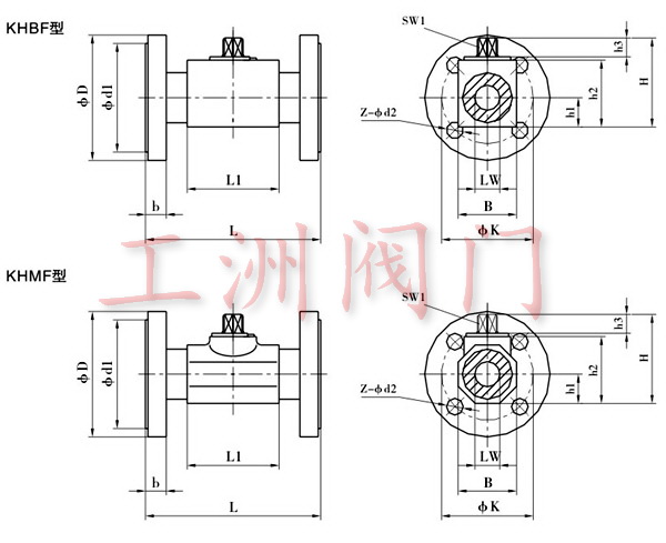 簡略型號  | 壓力范圍  | DN  | LW  | L  | L1  | D  | d1  | d2  | k  | B  | b  | H  | h1  | h2  | h3  | SW1  | Z  |