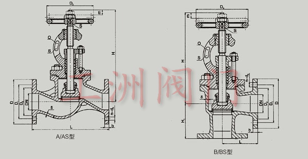 PN0.6、1.0、1.6MPa的AS型、BS型基本尺寸 Dimensions