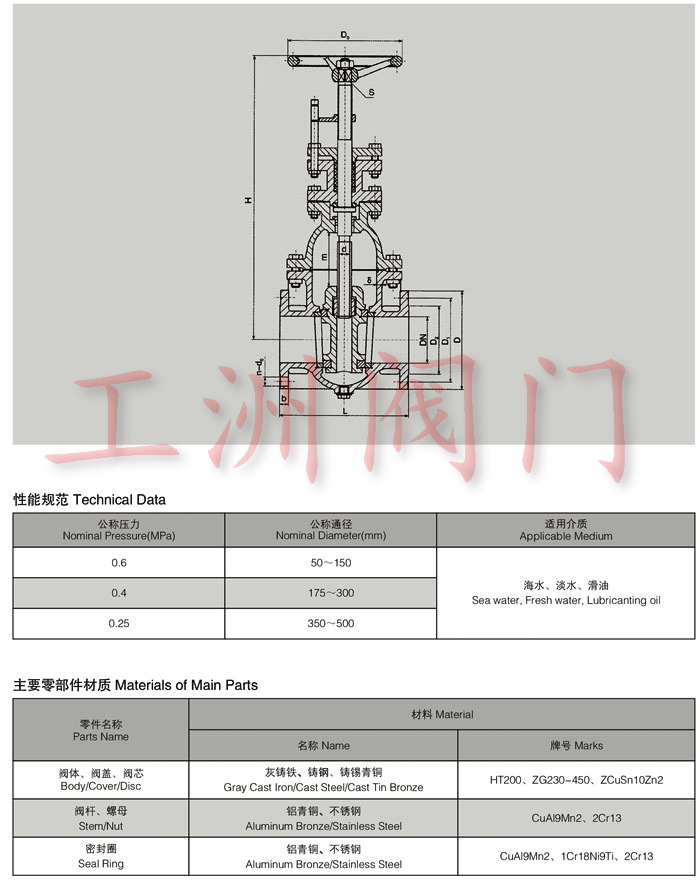 CB/T466-1995船用法蘭鑄鋼閘閥 Marine Cast Steel Flanged Gate Valves CB/T467-1995船用法蘭青銅閘閥 Marine Bronze Flanged Gate Valves CB/T3955-2004法蘭不銹鋼閘閥 Flanged S.S Gate Valves