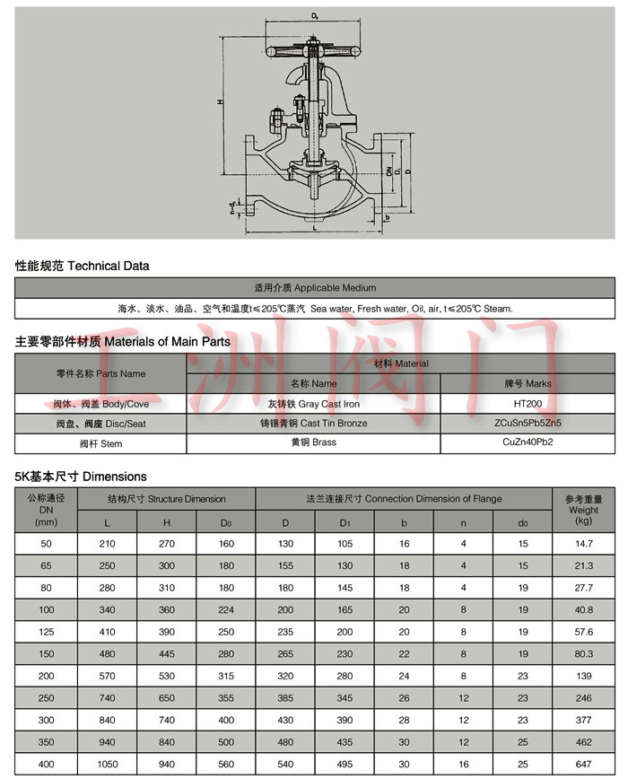 JIS F7305 5K/F7307 10K/F7309 16K船用鑄鐵法蘭直通截止閥 5K/10K/16K Marine Cast Iron Flanged Globe Stop Valves JIS F7353 5K/F7375 10K/F7377 16K船用鑄鐵法蘭直通截止止回閥 5K/10K/16K Marine Cast Iron Flanged Globe Stop Check Valves