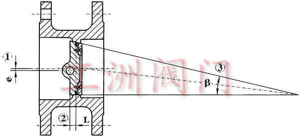 當閥門開啟時,蝶板與閥座在關閉時瞬間接觸,利用蝶板偏心1、偏心2迅速脫離閥座,降低了密封副的磨損,磨擦力矩小,開啟靈活。偏心錐面3,使閥門在開啟或關閉時蝶板能通過閥座內孔,實現接觸密封。另外,錐形蝶板的旋轉半徑大于密封副接觸位置的旋轉半徑,故蝶板在閥門關閉時將出現越關越緊,能夠實現自鎖,防止蝶板過位。