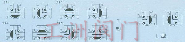 備注:三通球閥一般采用兩閥座結構,如流向圖A所示兩種工況。選用兩面閥座L型結構(即Q44型)。流向B中①和④兩種工況亦可選用兩閥座T型結構(即Q45型)。流向圖B②和③兩種工況必須選用四閥認T型結構(即Q45型)。其余工況也可以先用四閥座結構,但在訂貨合同中注明閥座結構。如閥門有其它要求請參閱樣本《閥門的型號編制方法》填寰相應的要求代號。