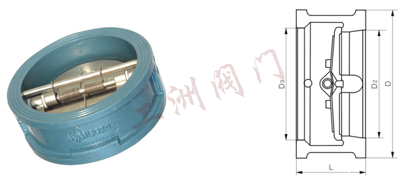 四、WM400系列止回閥主要外形連接尺寸: 公稱壓力 NP(mm)   | 公稱通徑 DN(mm)   | 尺寸 mm   | 重量 (kg)   | 配管法蘭 ( 供參考 )   |  L   | D   | D3   | D2   | 螺栓孔中心圓直徑D1  | 螺栓數(shù)量  | 螺栓直徑d | 螺栓長度L1 |  1.0/1.6   | 50   | 43   | 125   | 56   | 51   | 2   | 125   | 4   | M16   | 150   |  65   | 46   | 145   | 73   | 65   | 3   | 145   | 4   | M16   | 155   |  80   | 64   | 160   | 88   | 80   | 4   | 160   | 8   | M16   | 160   |  100   | 64   | 180   | 108   | 102   | 6   | 180   | 8   | M16   | 165   |  125   | 70   | 210   | 132   | 127   | 8   | 210   | 8   | M16   | 180   |  150   | 76   | 240   | 160   | 152   | 13   | 240   | 8   | M20   | 205   |  200   | 89   | 295   | 210   | 203   | 24   | 295   | 8   | M20   | 235   |  250   | 114   | 355   | 266   | 254   | 37   | 350   | 12   | M20   | 255   |  300   | 114   | 410   | 310   | 305   | 50   | 400   | 12   | M20   | 290   |  350   | 127   | 475   | 355   | 350   | 76   | 460   | 16   | M20   | 295   |  400   | 140   | 525   | 405   | 400   | 110   | 515   | 16   | M24   | 310   |  450   | 152   | 585   | 455   | 450   | 135   | 565   | 20   | M24   | 325   |  500   | 152   | 650   | 505   | 500   | 158   | 620   | 20   | M24   | 345   |  600   | 178   | 770   | 605   | 600   | 320   | 725   | 20   | M27   | 355   |  700   | 229   | 840   | 700   | 695   | 380   | 840   | 24   | M27   | 440   |  800   | 241   | 950   | 800   | 796   | 560   | 950   | 24   | M30   | 450   |  900   | 241   | 1050   | 903   | 898   | 640   | 1050   | 28   | M30   | 520   |  1000   | 300   | 1170   | 1055   | 1050   | 900   | 1160   | 28   | M33   | 590   |  1200   | 350   | 1390   | 1205   | 1200   | 1400   | 1380   | 32   | M36   | 695   |