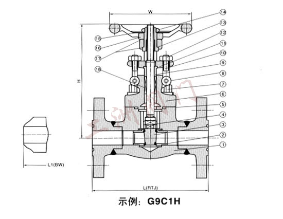 | 零件名稱 | CS to ASTM  | AS to ASTM  | SS to ASTM   |  | Type A105  | Type F22  | Type F304(L) | Type F316(L) |  | 1 | 閥體 | A105 | A182 F22  | A182 F304(L)  | A182 F316(L)  |  | 2 | 墊片 | Corrugated SS+graphite  | SS+PTFE |  | 3 | 螺栓  | A193 B7  | A193 B16  | A193 B8  | A193 B8M  |  | 4 | 銷釘  | A276 420 | A276 304  |  | 5 | 填料壓套  | A276 410 | A182 F304(L)  | A182 F316(L) |  | 6 | 活節螺栓  | A193 B7  | A193 B16  | A193 B8  | A193 B8M  |  | 7 | 螺母  | A194 2H  | A194 4  | A194 8  | A194 8M  |  | 8 | 閥桿螺母  | A276 410  |  | 9 | 螺母  | A194 2H  | A194 4  | A194 8  | A194 8M  |  | 10 | 銘牌  | SS |  | 11 | 手輪  | A197 |  | 12 | 填料壓板  | A216 WCB  | A351 CF8  |  | 13 | 填料  | 柔性石墨 | PTFE |  | 14 | 閥蓋  | A105 | A276 304  | A182 F304(L)  | A182 F316(L)  |  | 15 | 閥桿  | A182 F6  | A182 F304  | A182 F304(L)  | A182 F316(L) |  | 16 | 閥瓣  | A276 420 | A276 304  | A276 304(L)  | A276 316(L) |  適用介質  | 水、蒸汽、油品等 | 水、蒸汽、油品等 | 硝酸、醋酸等 |  | 適用溫度 | -29℃~425℃ | -29℃~550℃ | -29℃~180℃ |