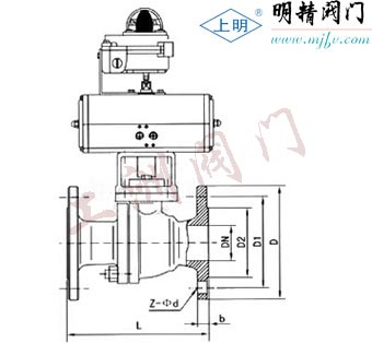 三、ZSHO氣動O型切斷球閥安裝尺寸表: 公稱 通徑 DN(mm)  | 尺 寸(mm)  | 執 行 器 型 號  |  1.6MPa  | 2.5MPa  | 4.0MPa  |  L  | D  | D1  | b  | Z-фD  | L  | D  | D1  | b  | Z-фD  | L  | D  | D1  | b  | Z-фD  | 可選配DA/SR、QGSY、